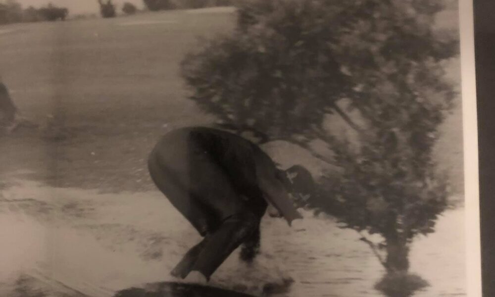 Brad Dickey, from inland California, caught attention in '83 bottom turning under a tree at the local golf course, that was featured in Surfer Magazine. Joining Victoria Skimboards in '85, and by 1990, Dickey dominated the contest circuit , known for his big wave skills and pioneering moves like the wedge side wave, marking his era in skimboarding in the 80s and early 90s. "MF"